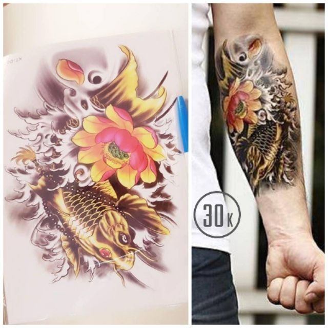 Hình xăm cá chép tattoo bắp tay và hết tay. Ý nghĩa hình xăm cá chép qua màu sắc. Mẫu hình xăm nghệ thuật cá chép hóa rồng. Xem những hình xăm cá chép gồm nhiều mẫu đẹp gồm các màu sắc : Nên chọn hình ảnh những chú cá chép màu đỏ, xanh lá, không lựa chọn hình xăm cá chép có màu xanh da trời.